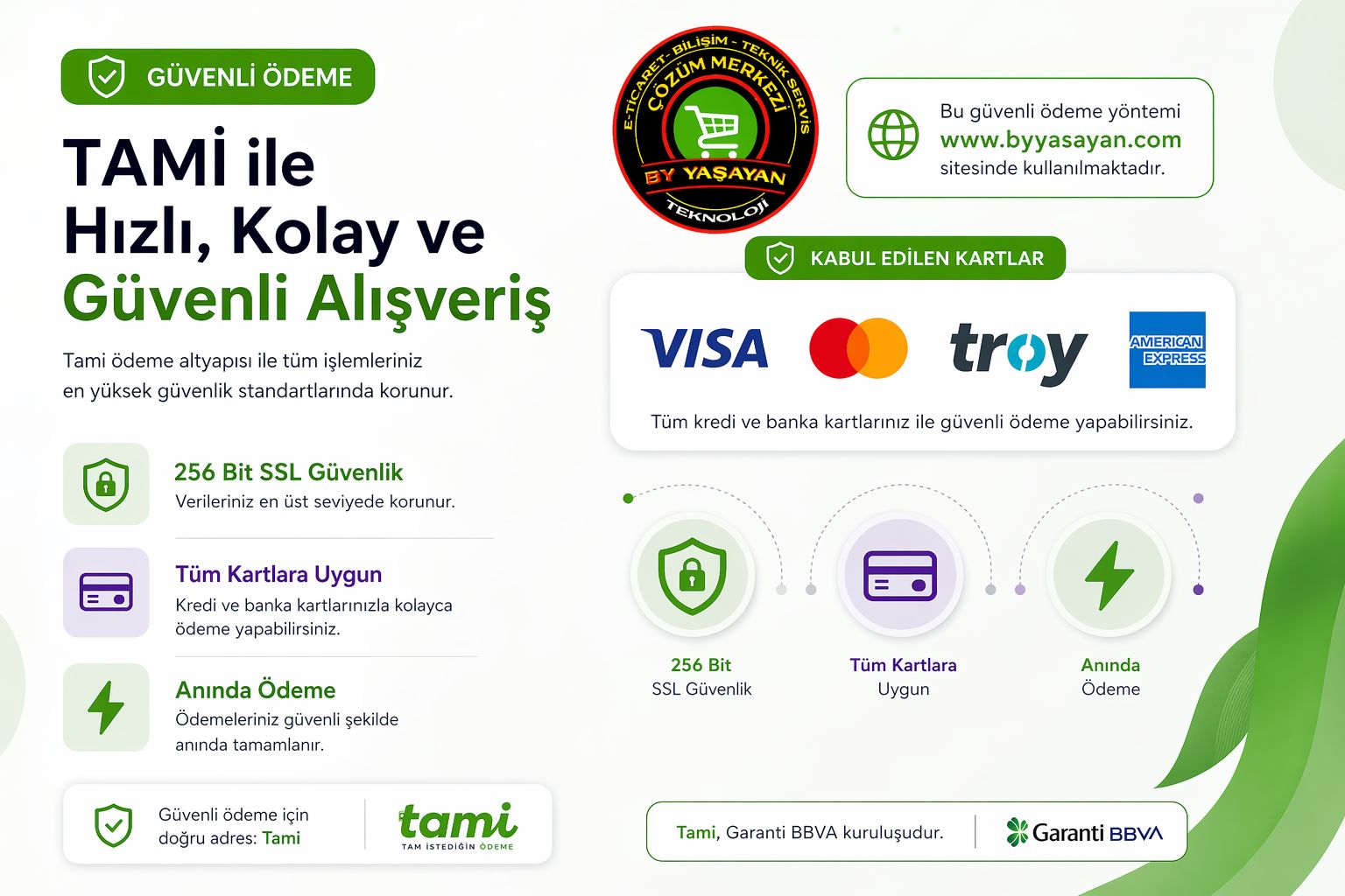 By YAŞAYAN olarak tüm ödemelerinizi güvenle gerçekleştirebilmeniz için Tami altyapısını kullanıyoruz.